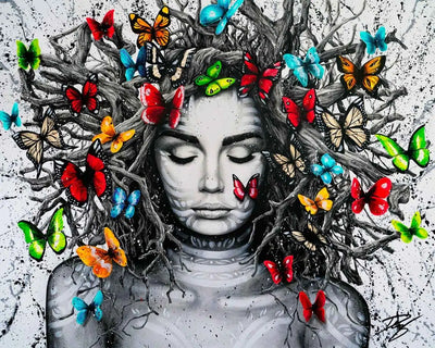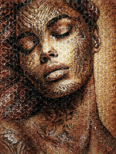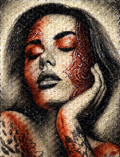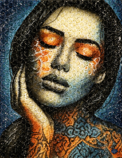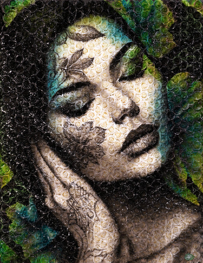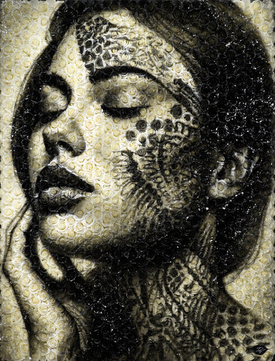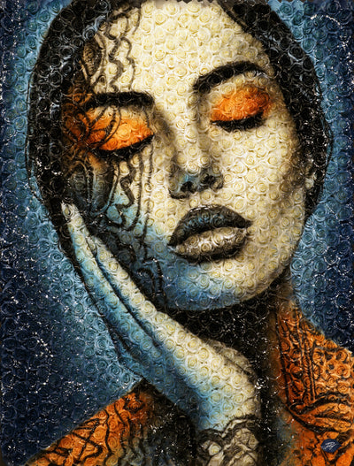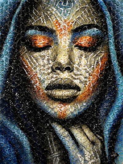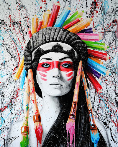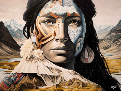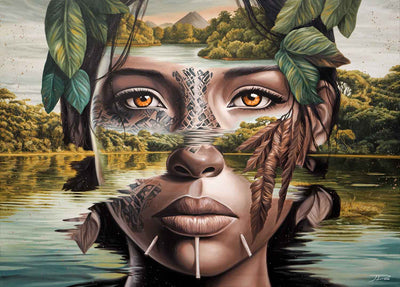 Acrylique sur toile"Yara", signifiant "Mère de l'eau" dans la mythologie tupi-guarani, est un hommage vibrant à l'union sacrée entre les peuples indigènes et la majestueuse forêt amazonienne qui est leur foyer. Dans le regard de Yara se reflète la force et la sérénité des cours d'eau qui nourrissent la vie en Amazonie, ses yeux portant en eux la lumière mystique des rivières et des lacs qui serpentent à travers le poumon vert de notre planète.Le visage de Yara fusionne avec les éléments de son environnement naturel : les motifs sur sa peau rappelle l'écorce des arbres ancestraux, ses lèvres et sa peau se confondent avec les eaux tranquilles et refletées de l'Amazonie, et les feuillages qui ornent sa tête évoquent la canopée luxuriante.Cette œuvre rend hommage à l'âme des Guarani, leur respect profond pour la Terre qui les nourrit, les protège, et leur enseigne la sagesse.