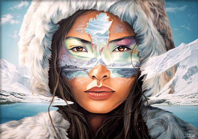 Acrylique sur toileJe vous présente "Sila", la nouvelle œuvre de ma série "Visages du monde" inspirée par la beauté sauvage du Groenland et la sagesse du peuple inuit.Œuvre actuellement en exposition chez galeries Bartoux "Sila", dans la langue inuit, signifie "Esprit du ciel", un nom qui reflète la connexion céleste et l'immensité du monde naturel qui berce les peuples autochtones du Nord. Les yeux de Sila sont une fenêtre sur l'âme de ce peuple, empreints de la tranquillité des étendues glacées et de la lumière changeante du ciel polaire.Le visage de Sila, orné des couleurs de l'aurore boréale, se confond avec le paysage arctique, rappelant que les Inuits ne font qu'un avec la terre, la glace, et le ciel. Sa capuche de fourrure, rappelant la neige qui recouvre ces terres, souligne l'harmonie entre l'humanité et les éléments, entre la survie et la splendeur de la nature.À travers "Sila", je souhaite rendre hommage à la résilience et à la beauté du peuple inuit, qui trouve poésie et vie dans le cœur même de l'hiver. Cette œuvre est un témoignage du respect profond que nous devons à notre environnement et à ces cultures qui savent y lire un langage ancestral.