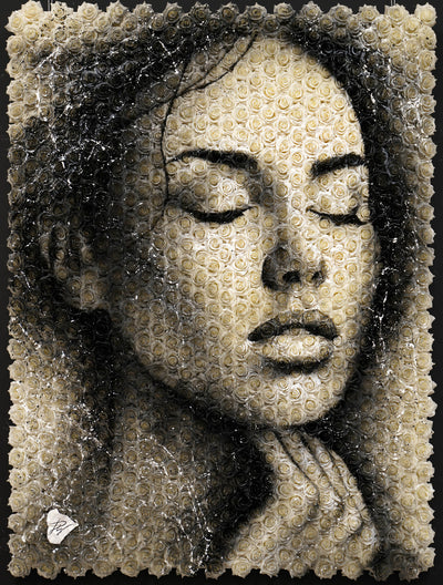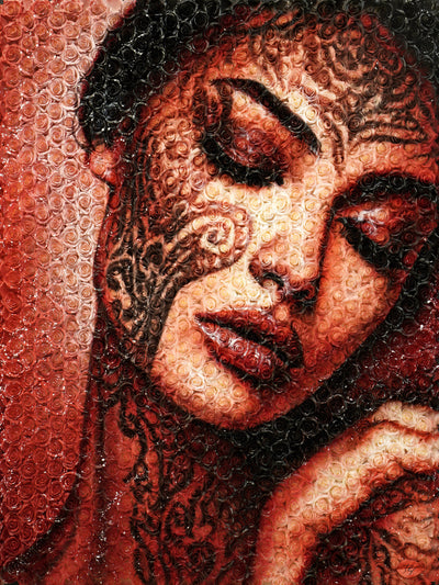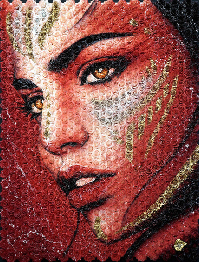 Peinture acrylique et aérosol sur roses de soieUne oeuvre originale de Julien Durix.