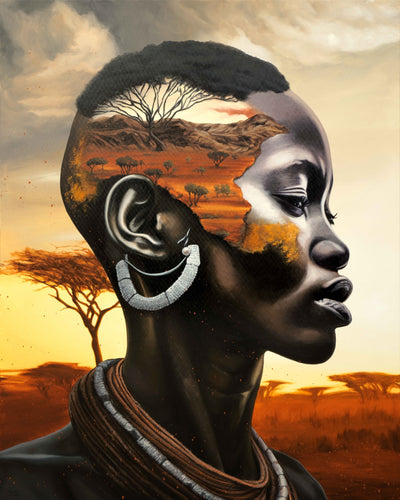Acrylique sur toileÀ travers cette œuvre, j'ai voulu retranscrire la beauté intemporelle d'une femme d'Afrique de l'est, inspirée du peuple swahilie et son lien sacré avec la nature qui l'entoure."Ayanna" est une ode à l'unité entre l'être humain et la nature, une union qui a nourri les civilisations africaines depuis des millénaires et qui continue d'inspirer le monde entier.