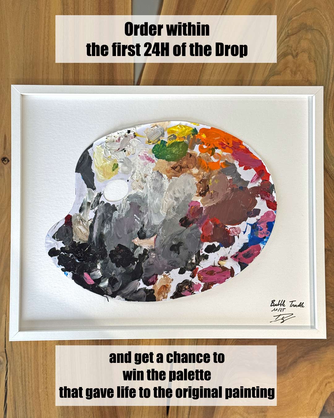 Julien Durix ne propose pas de commandes personnalisées. Les éditions limitées sont disponibles uniquement dans les formats 50 x 70 cm et 100 x 70 cm sur notre site. Si vous êtes intéressé par des formats plus grands, veuillez consulter les œuvres originales exposées chez Les Galeries Bartoux.