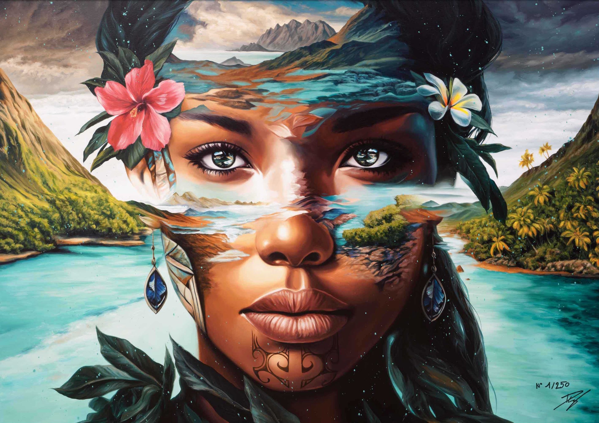 "Kailani", la nouvelle œuvre de la série "Visages du monde". Celle-ci explore la connexion profonde entre les peuples polynésiens et les splendeurs naturelles de leur environnement ![]()