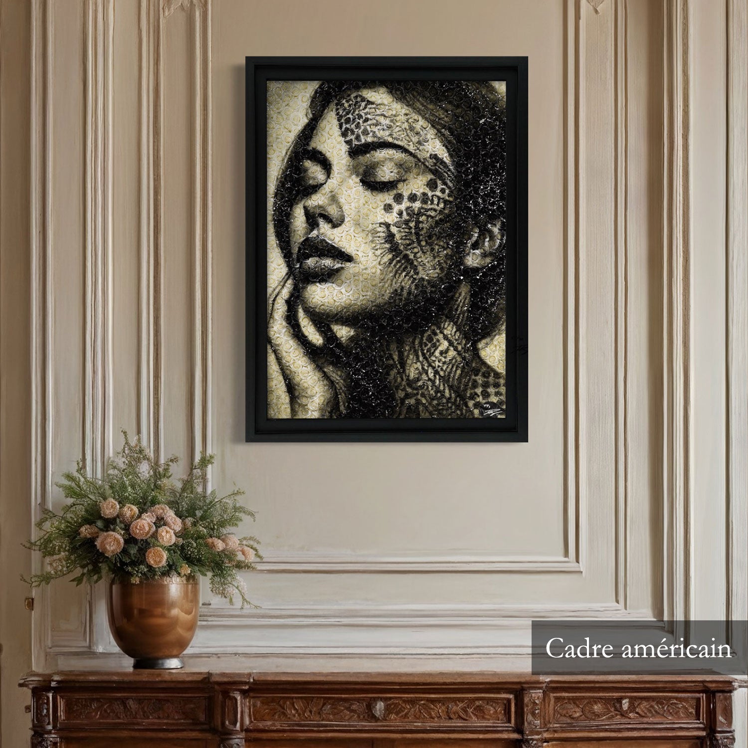- Le « Cadre Américain » : Avec une épaisseur de 10 cm, cet encadrement en bois allie modernité et sophistication pour un rendu spectaculaire.