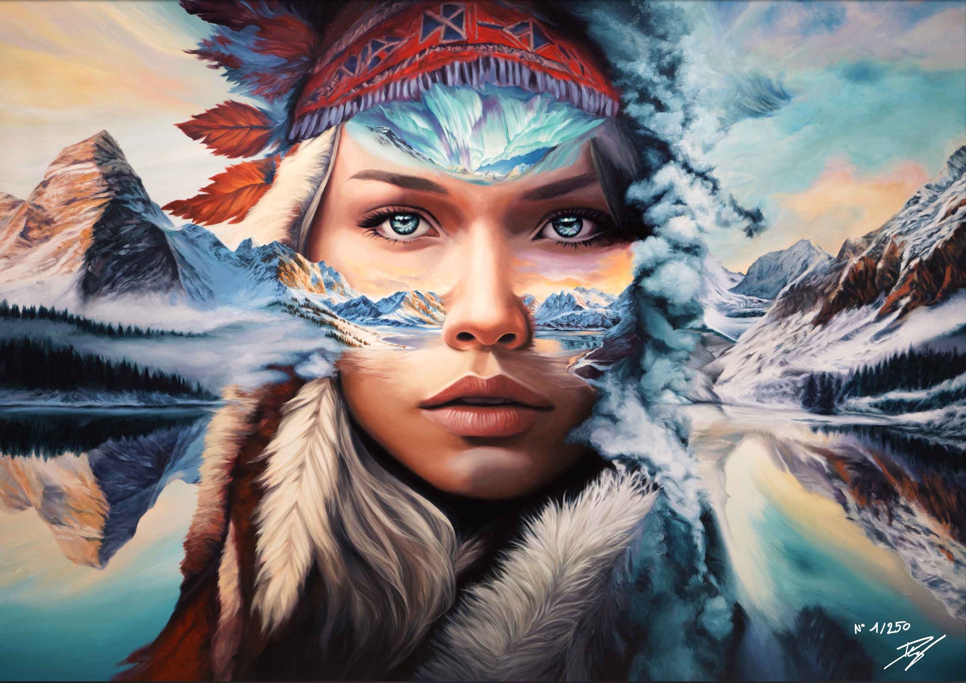 Cette œuvre invite le spectateur à se perdre dans le regard de Sunna, à suivre les aurores dans les montagnes et à ressentir la sérénité et la force des paysages nordiques. À travers cette œuvre, je souhaite célébrer la richesse des traditions sami et la splendeur de la nature norvégienne, tout en encourageant la réflexion sur notre propre lien avec l'environnement. "Sunna" est une ode à la lumière, au mystère et à la beauté intemporelle de l'Arctique.