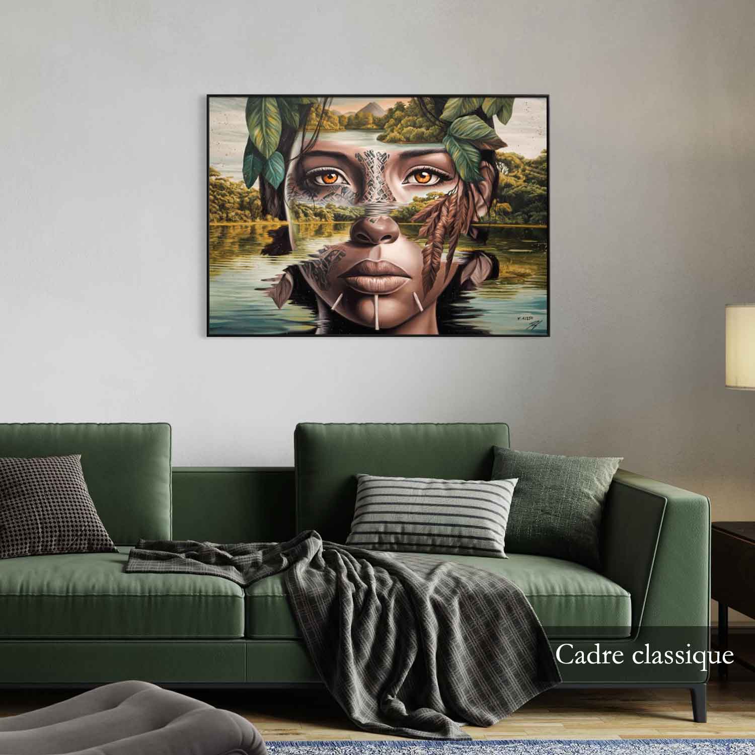 - Le cadre classique : Fabriqué en bois noir, ce choix intemporel saura mettre en valeur vos œuvres avec raffinement.